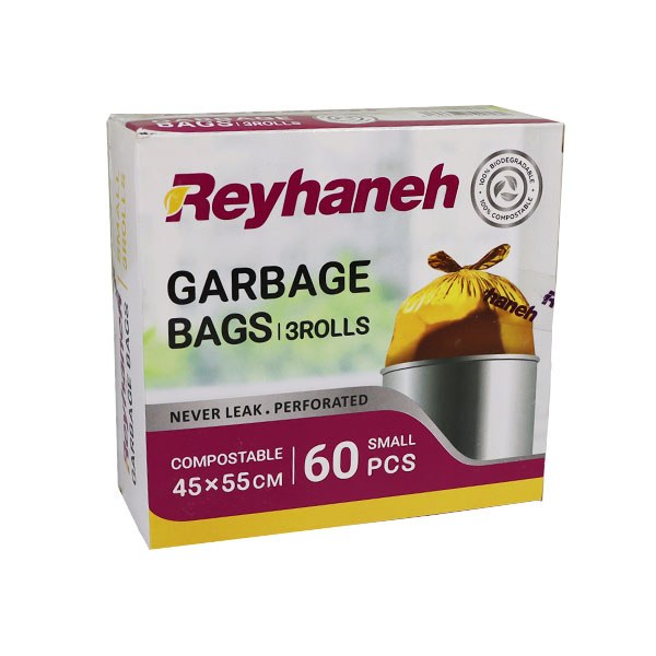 کیسه زباله 3 رول سبز ریحانه 55 در 45 بسته 60 عددی
