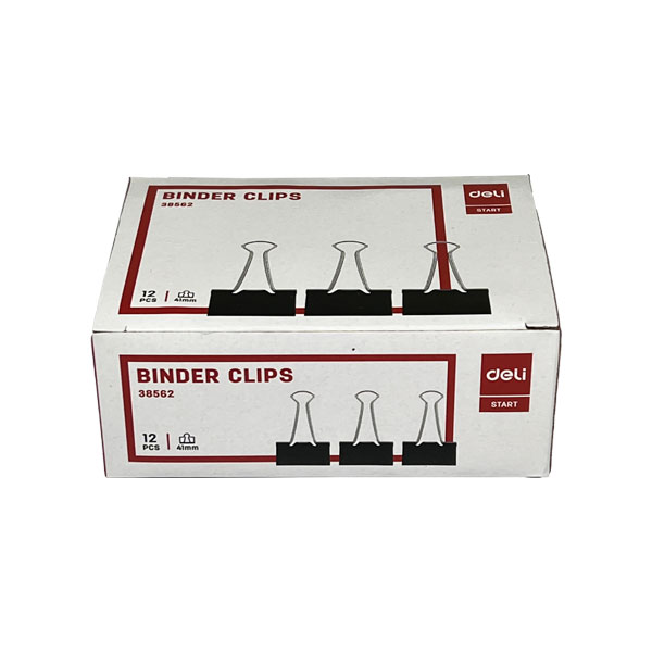 خرید گیره دوبل از برند دلی با رنگ مشکی و در سایز های مختلف پر مصرف در شرکت تامین فلات با ارزانترین قیمت عمده و به صورت فروش سازمانی جهت سفارش اداری ملزومات سازمان ها و شرکت ها قابل ارائه می باشد. این محصول در یک بسته 12 عددی مقوایی در سایزهای 19،32،25 میلی متر نیز موجود است.